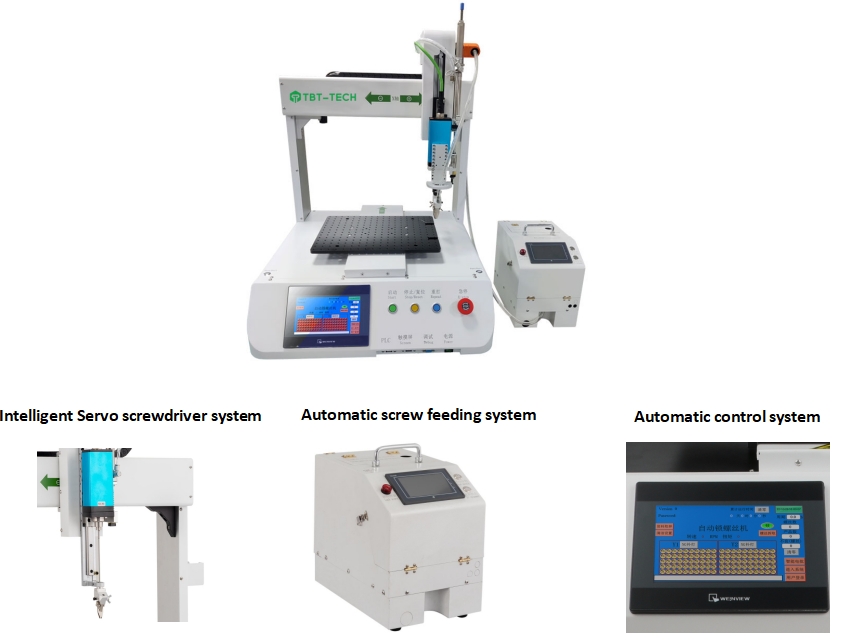 This machine includes 3 parts: The Servo screwdriver, the automatic screw feeder, and the motion control system.