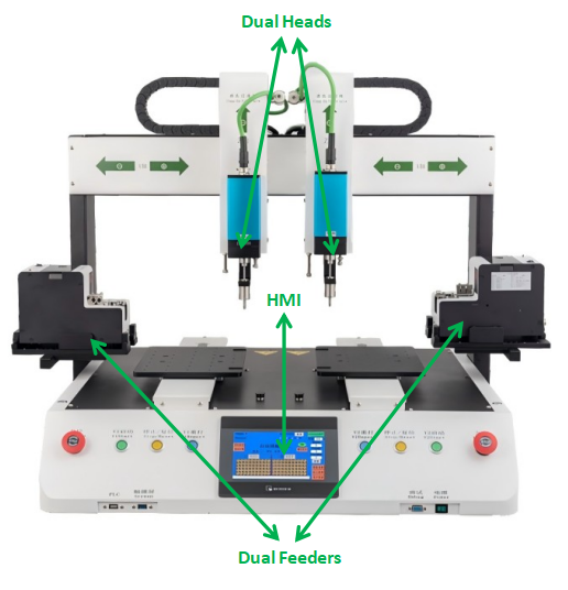 1: The dual-heads and dual-feeders is capable of being fastened with 2 different products and screws, providing enhanced flexibility and versatility in the tightening process.
