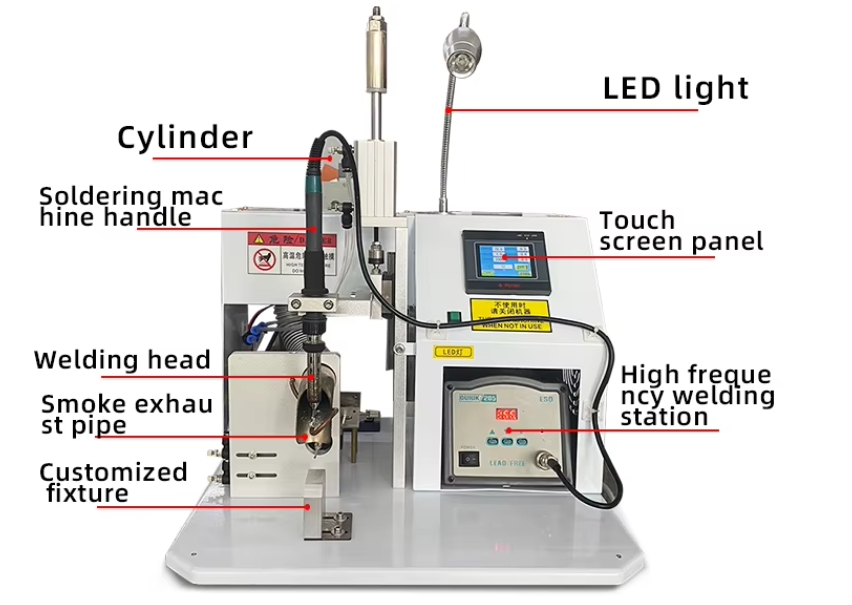 The semi - automatic soldering machine is a kind of welding equipment that combines manual operation and automatic functions. It melts the solder wire through electrical heating, and the welding action is completed with manual assistance. It mainly consists of a welding system (including a soldering iron tip, a heating device, and a solder feeding device) and a mechanical structure (such as a workbench, an operating handle, etc.). It is applicable to small - scale production workshops or scenarios with diverse products and flexible welding requirements, and has certain advantages.